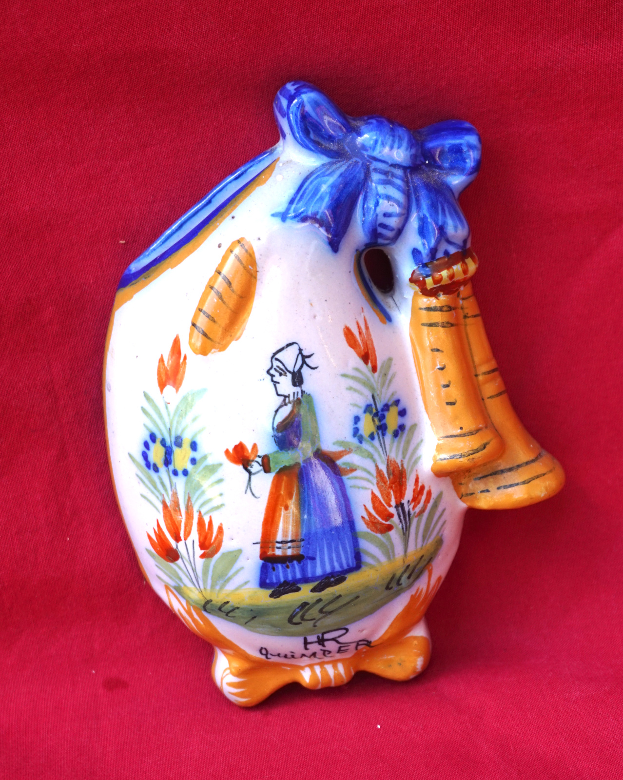 HR QUIMPER Bagpipe Wall Pocket Vase Little Bretonne 1900's