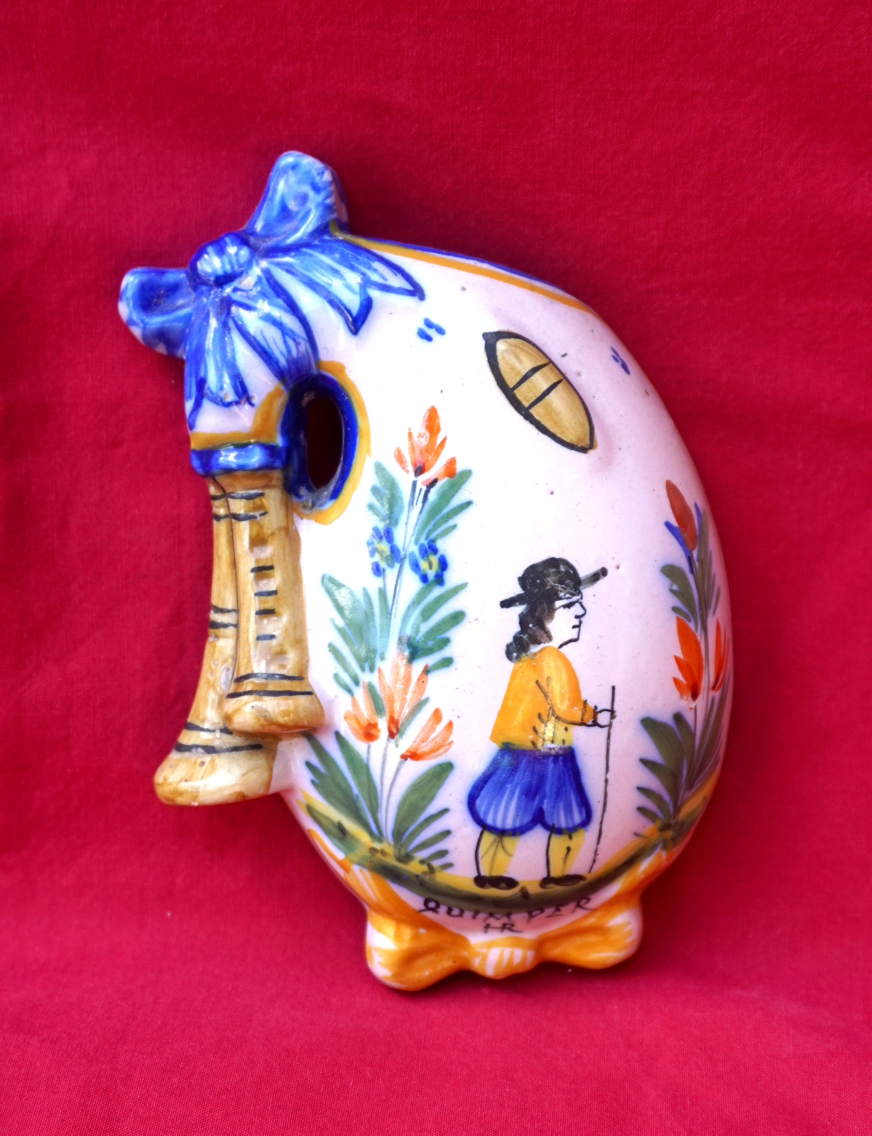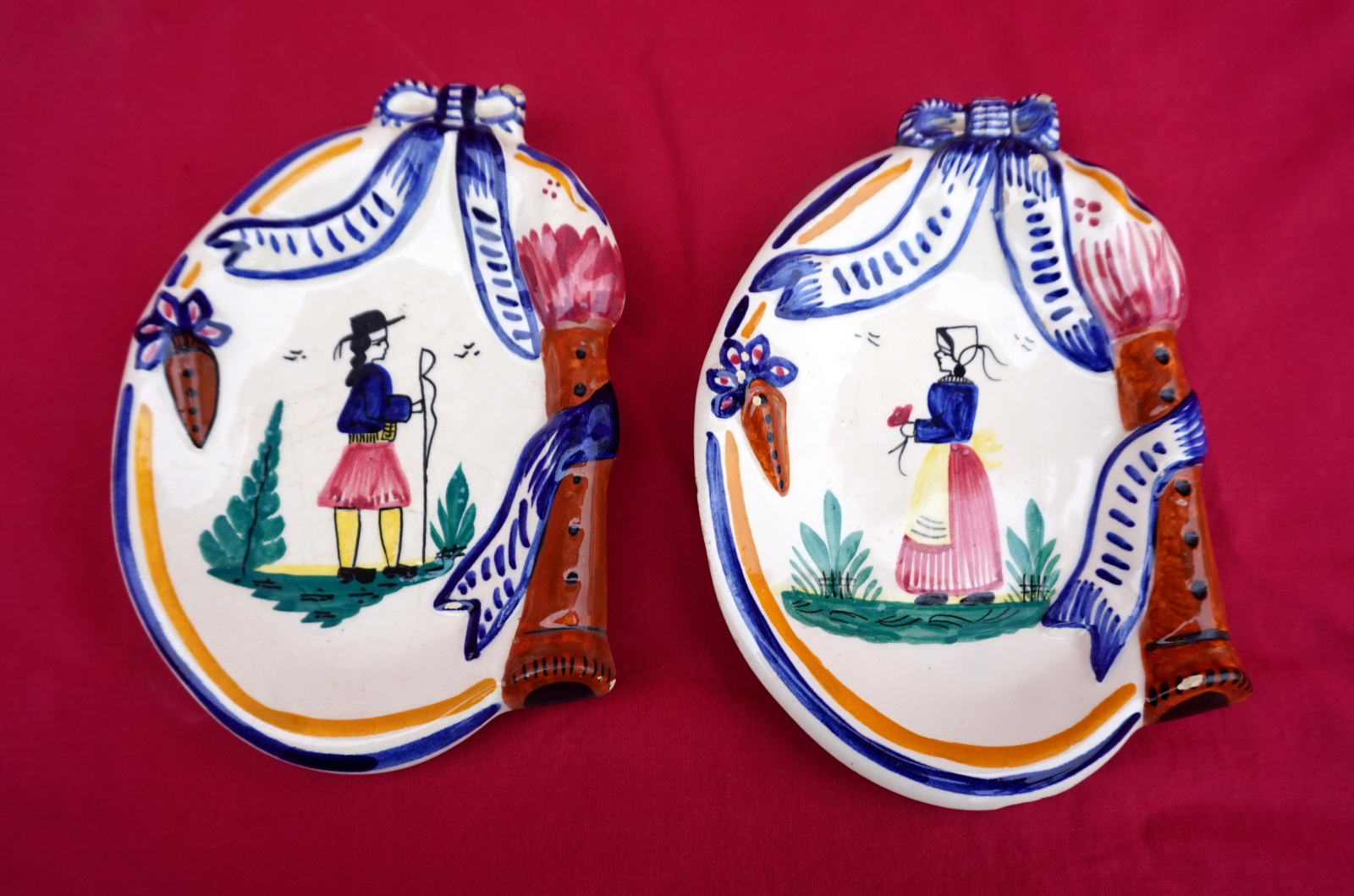 HR QUIMPER Bagpipe Wall Pocket Vase Little Bretonne 1900's