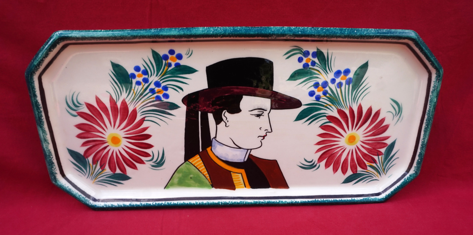 QUIMPER HB Rectangular Platter Tray Breton J Kervella French Faience