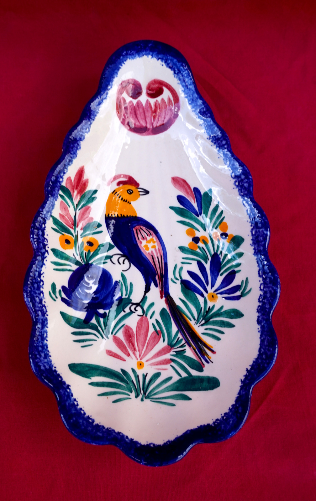 QUIMPER HB Breton Scalloped Small Oval Dish French Faience Vintage