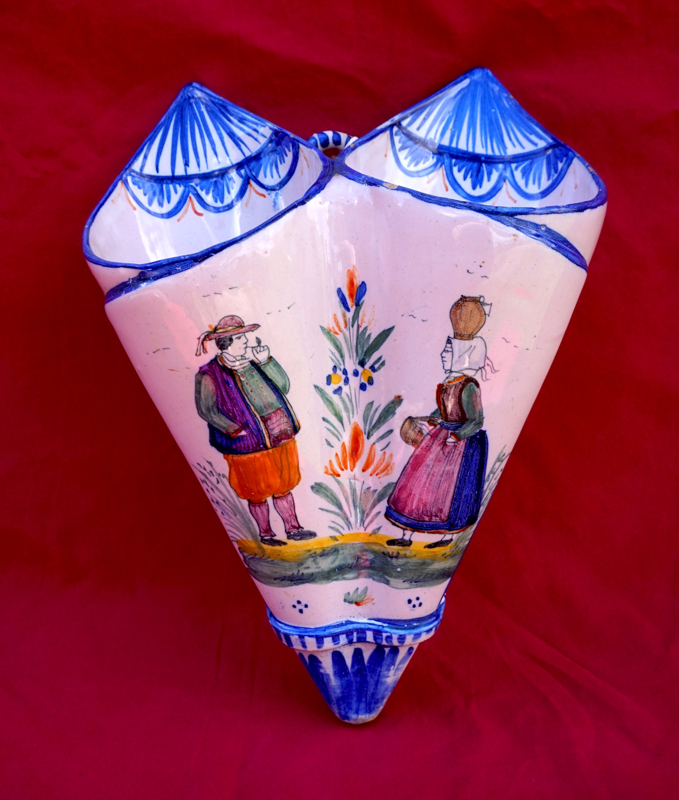QUIMPER HENRIOT Double Wall Pocket Couple Breton French Faience 1910's