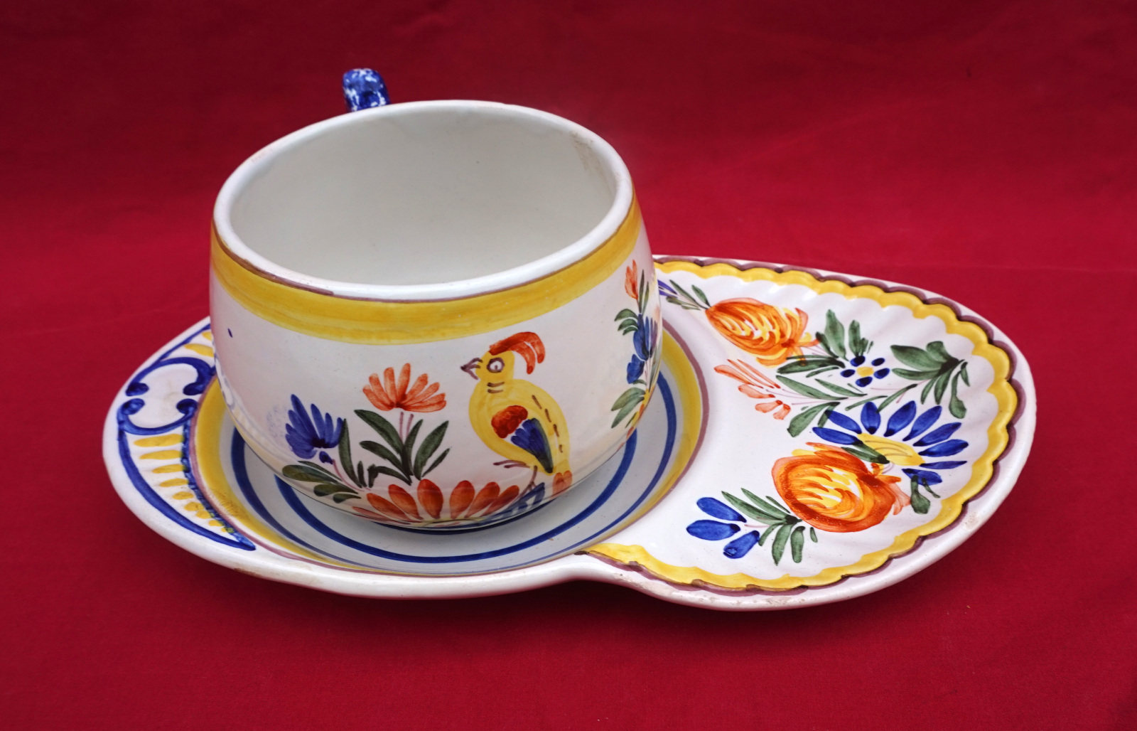 QUIMPER HB Tea cup Dessert Snack Saucer Rooster Flower Faience