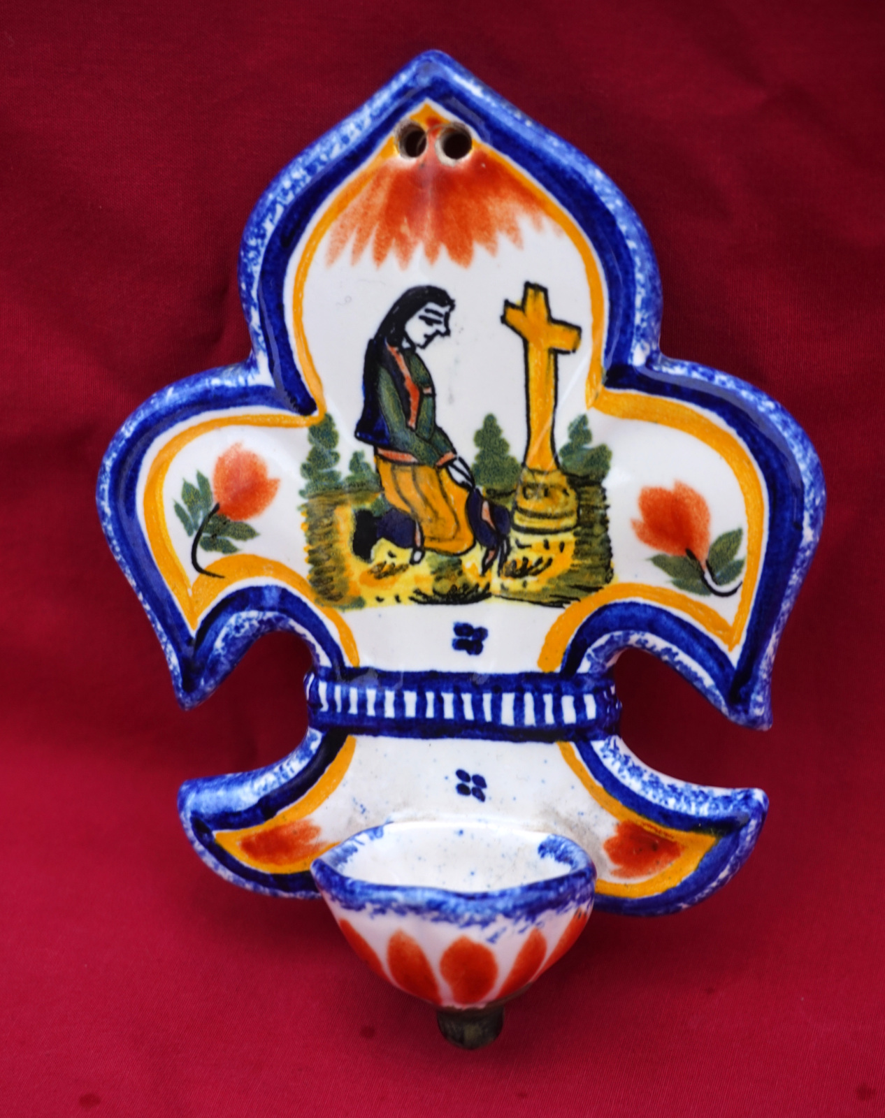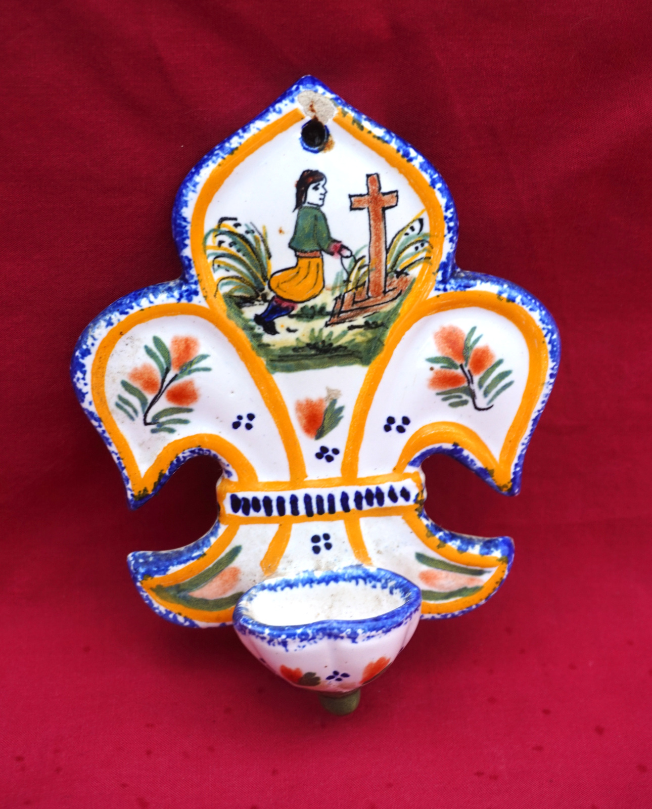 Henriot QUIMPER Fleur de Lys Shaped Holy Water Font Breton Vintage B