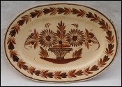 HB QUIMPER Large Flowered Brown Cream Oval Dish 1930