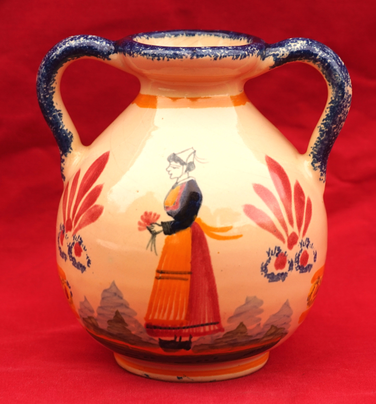 HENRIOT QUIMPER Small Handled Vase Pot Little Bretonne