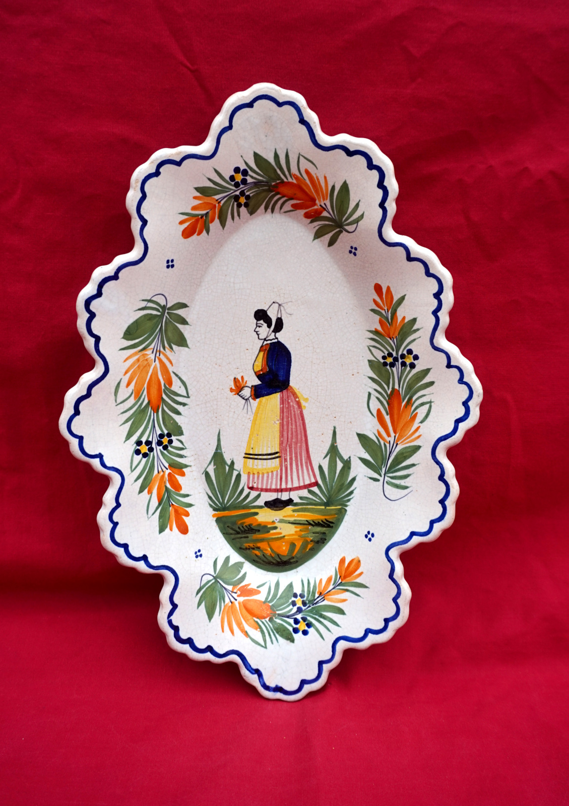 HENRIOT QUIMPER Little Bretonne Scalloped Oval Dish 40's