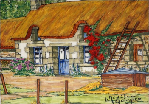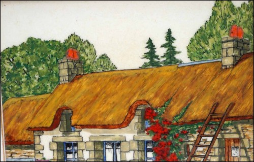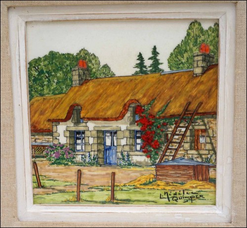 Breton Cottage Framed Hand Painted Tile L Medelec Quimper