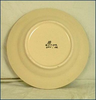 Assiette à soupe au traditionnel décor de dahlias née vers 1950 dans la célèbre manufacture HB Quimper. Décor 176, peintre CE. Diam 23,5 cm.