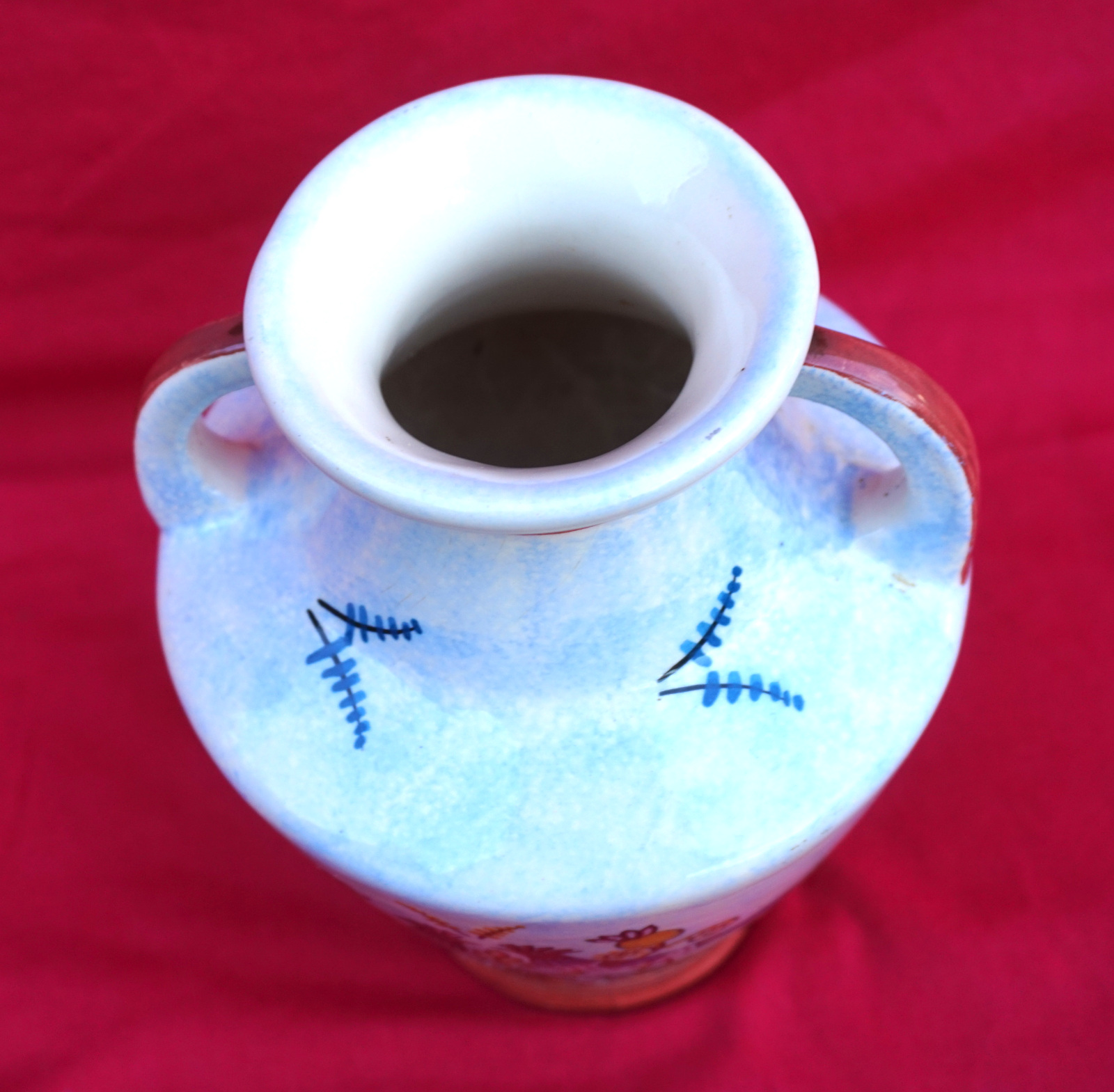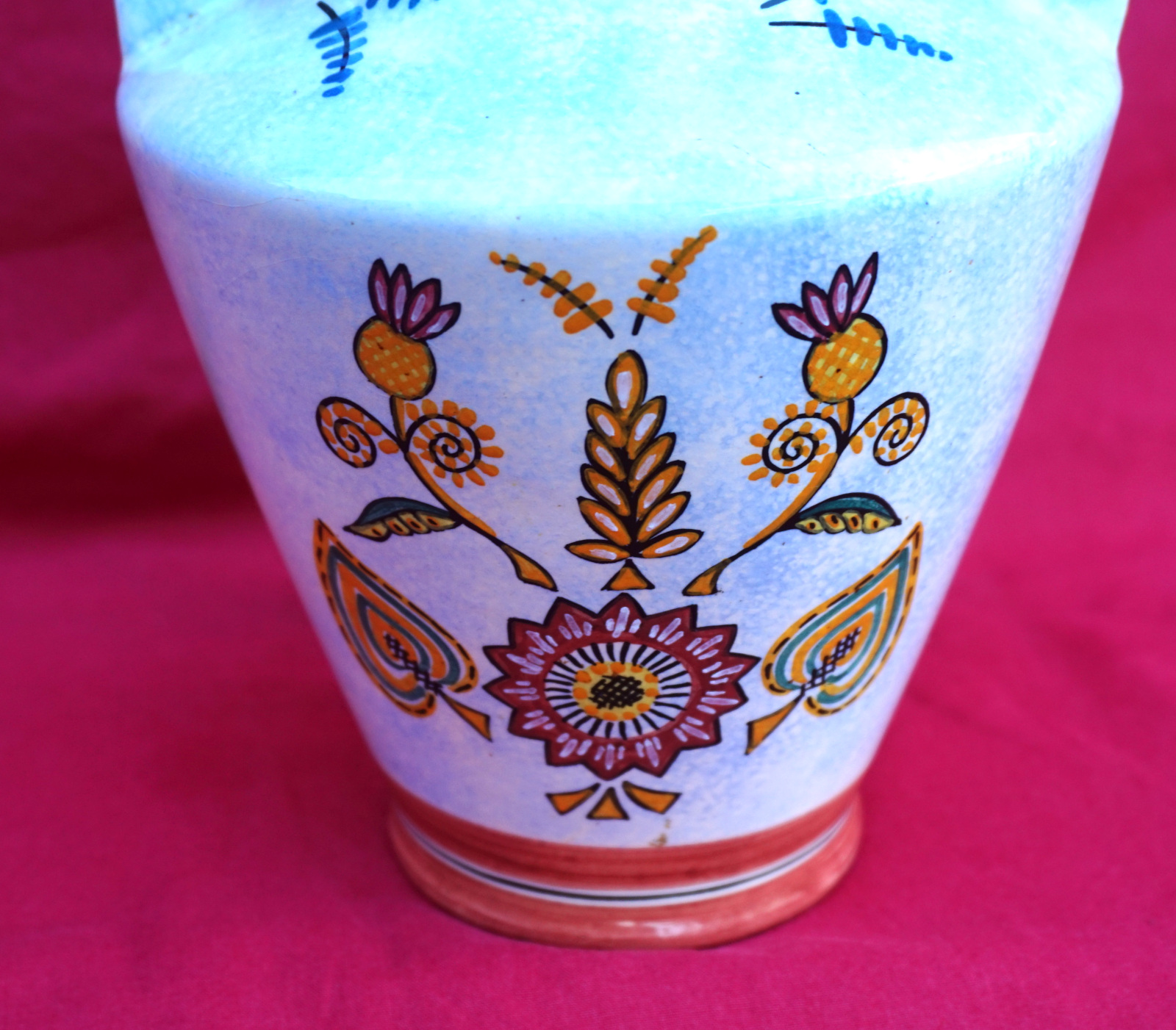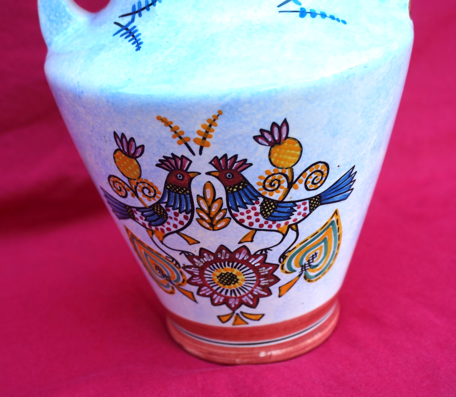 French hand painted faience vase showing birds and flowers made by HB Quimper during the 1950's.  It's signed on the back. 8" (20.5cm) height, 6" (15.3cm) diameter. Perfect condition.
