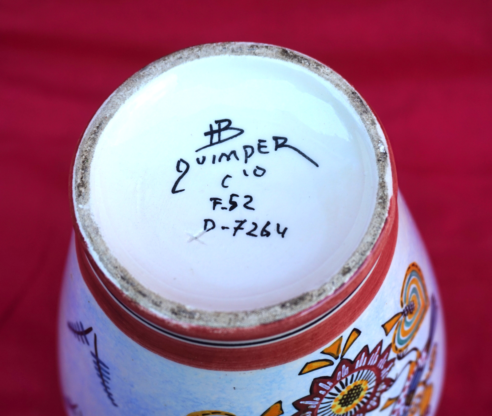 HB QUIMPER Bird Flowers Vase Hand Painted Faience Vintage 1950's