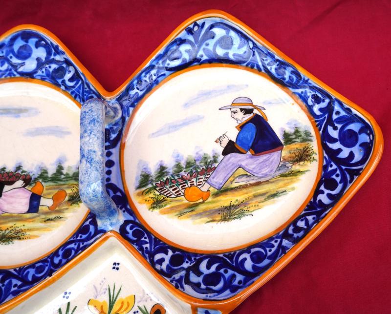 HB QUIMPER Kervella Trilobe Hors d'Oeuvre Dish Serving Couple Breton