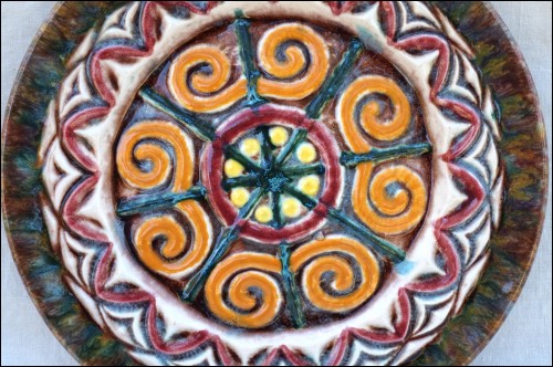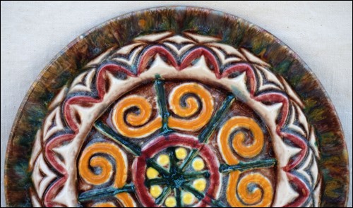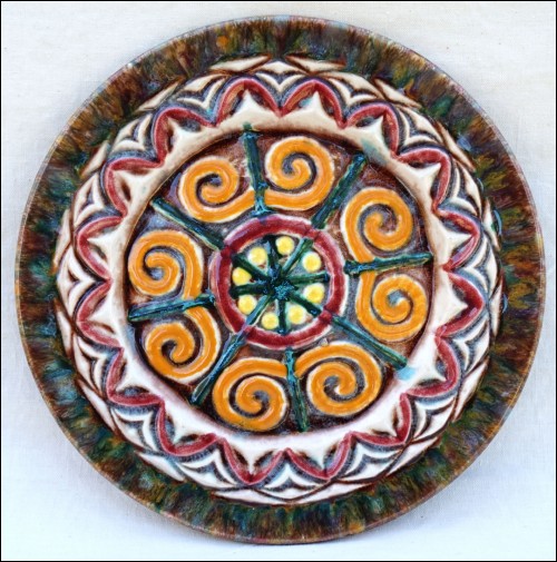 French hand painted faience plate shoxing celtic decor made by Rene Quillivic (1879 ? 1969) in HB Quimper during the first half of the 20th century. It's signed on the back. 10" diameter. Perfect condition as presented on the following pictures.