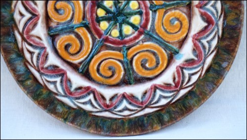 Assiette à décor celtique de René Quillivic à la manufacture HB de Quimper, 1ere moitié du XXe siècle. René Quillivic est sculpteur, graveur et céramiste (1879 ? 1969). Très bel état. Diamètre 25,5 cm.