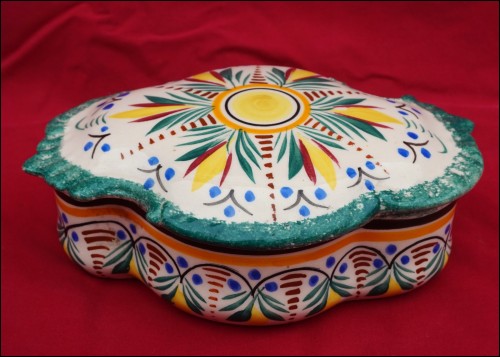 HB QUIMPER Scalloped Covered Box Trinket French Hand Painted