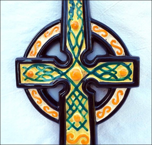 HB Quimper Wall Cross Crucifix Celtic Decor French Faience