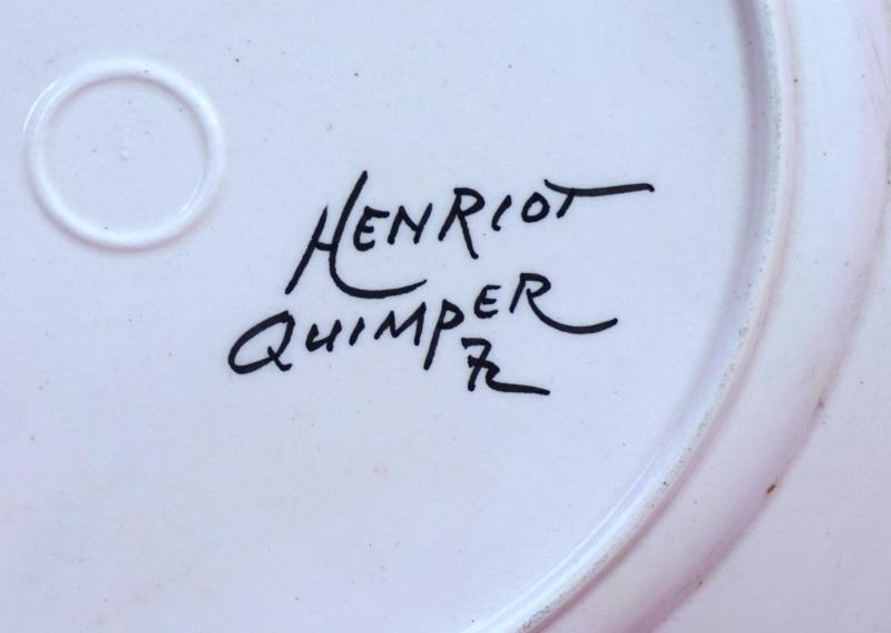 French hand painted faience scalloped plate with Breton made by Henriot Quimper during the 1950's. It's signed on the back. 9 7/8" (25cm) diameter. Perfect condition.
