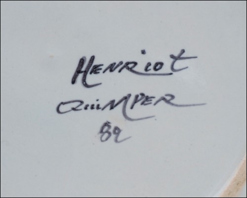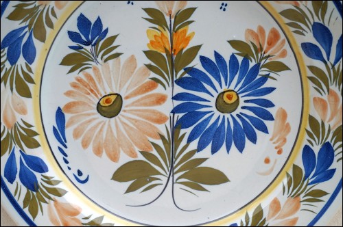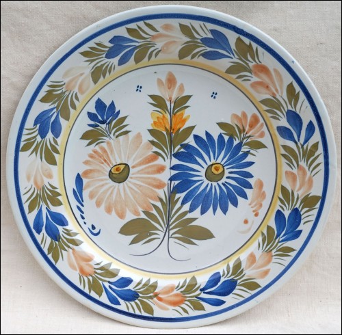 French hand painted faience dahlias flowred plate made by Henriot in Quimper during the 1930's. It's signed on the back. 9 1/2" diameter. Perfect condition as presented on the following pictures.