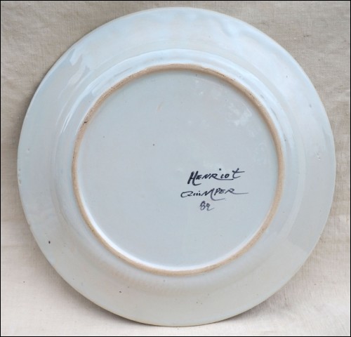 Assiette à décor de dahlias de la manufacture Henriot à Quimper vers 1930. Elle est signée sur son fond. Diamètre 24 cm. Très bel état.