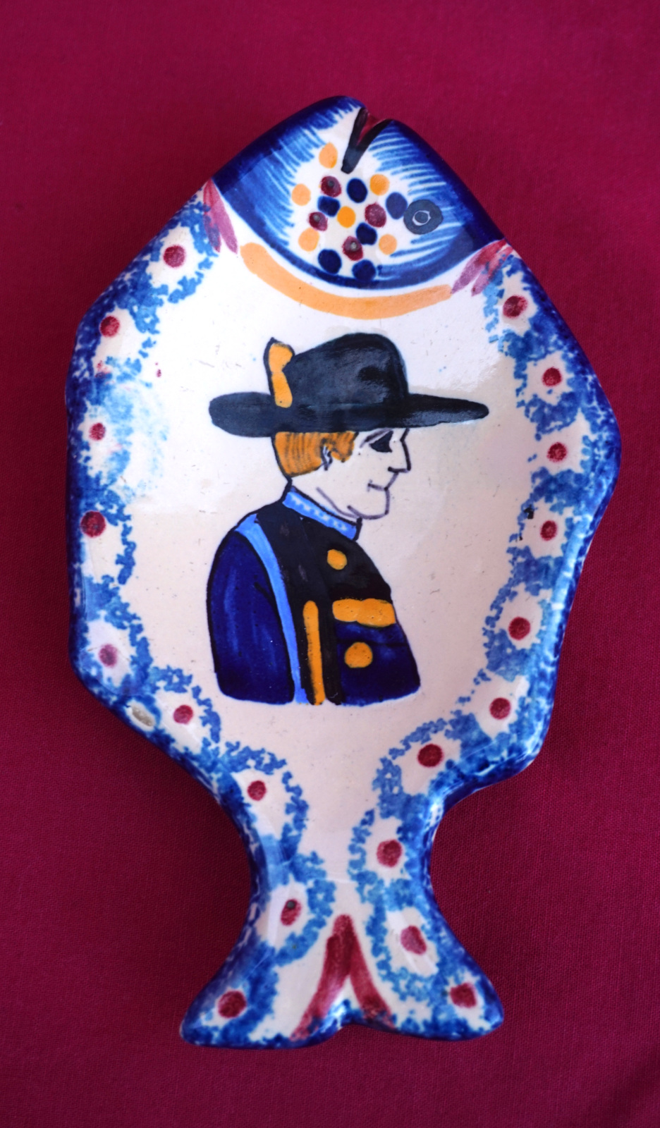 HENRIOT QUIMPER Fish Shaped Tidy Little Breton French Hand Painted Faience