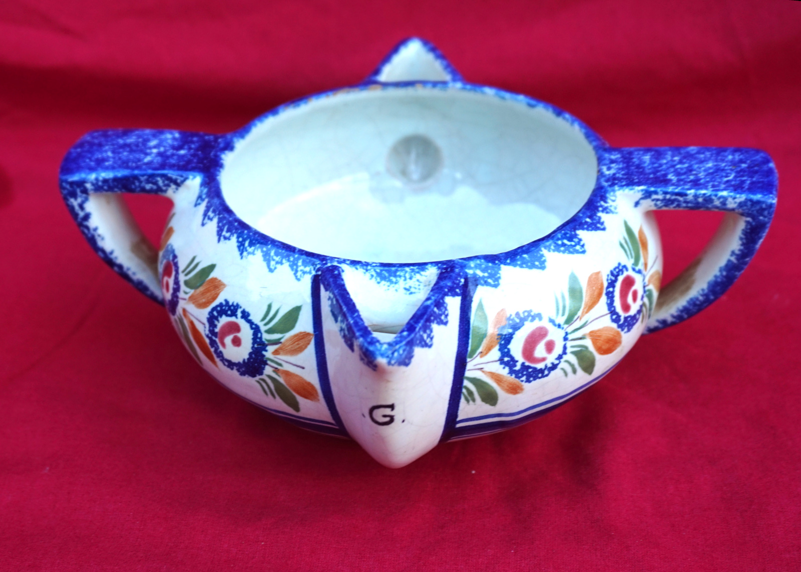 French hand painted faience gravy sauce boat made by Henriot Quimper during the 1930's. It's signed on the back. 7 3/4" (19.7cm) width, 23/4" (7cm) height. Perfect condition.