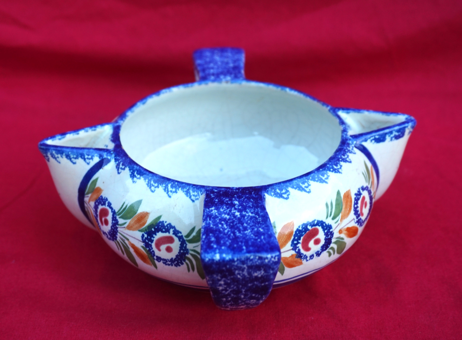 HENRIOT QUIMPER Gravy Sauce Boat Flowers Faience 1930's