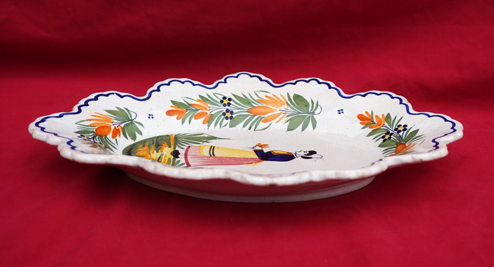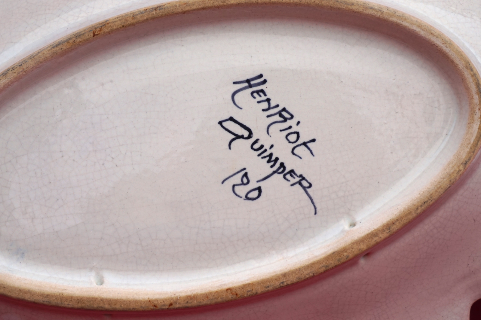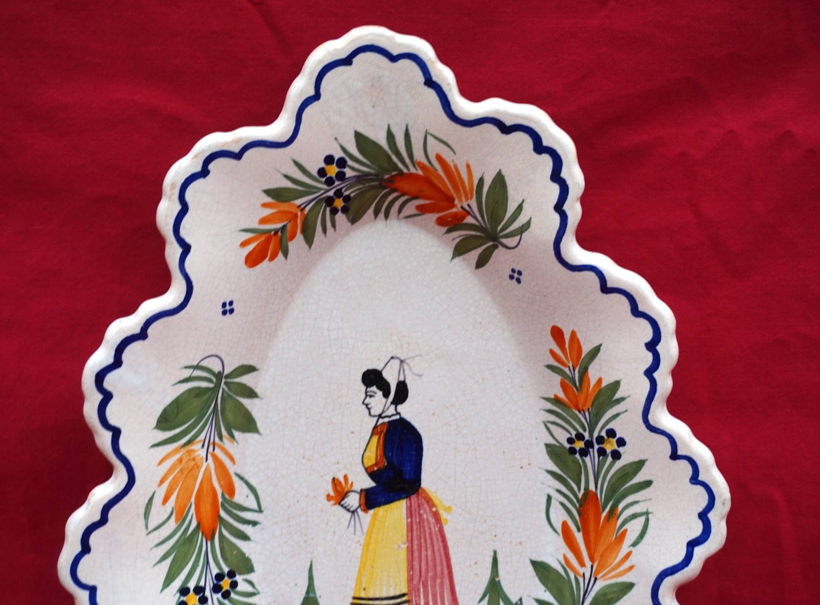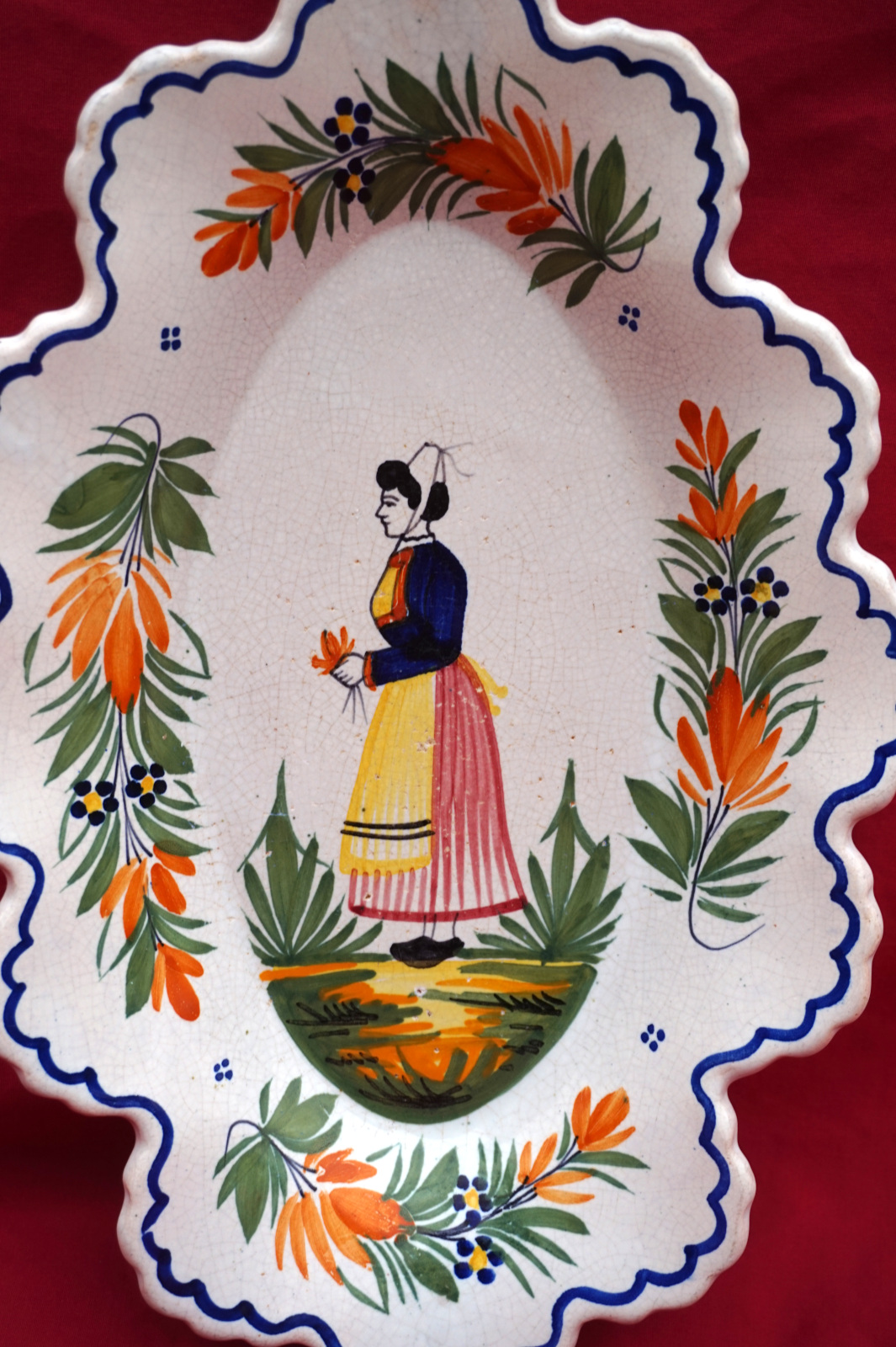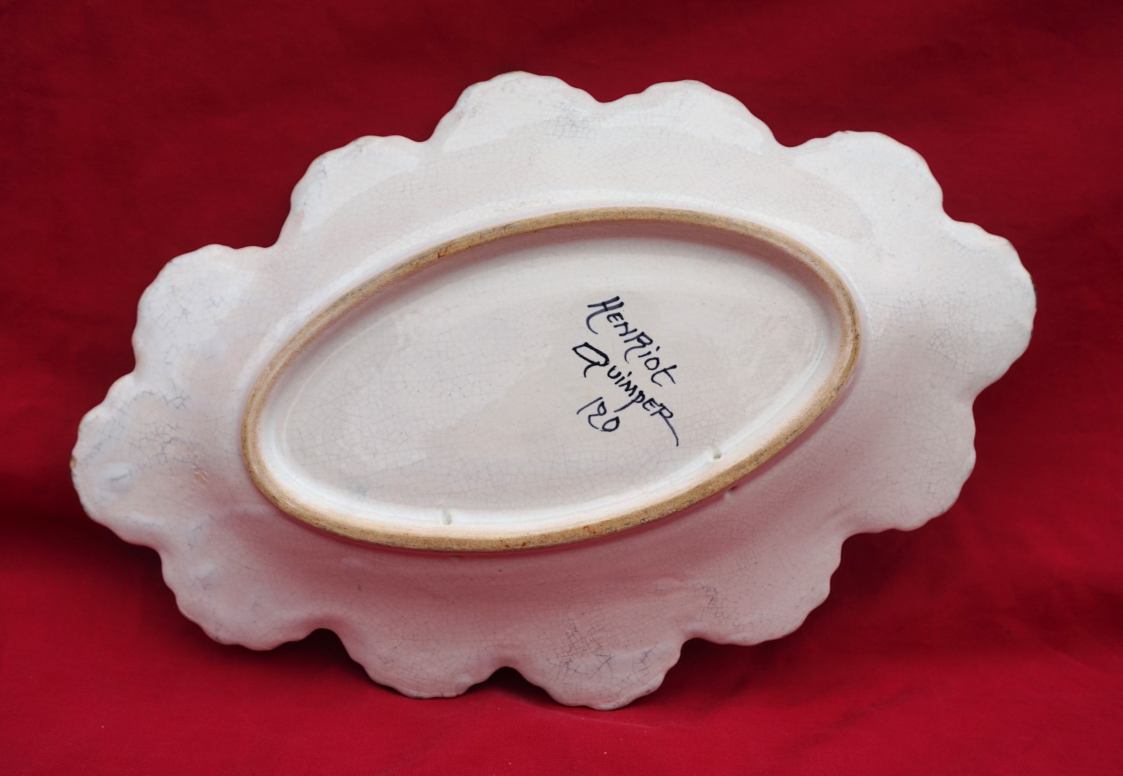 HENRIOT QUIMPER Little Bretonne Scalloped Oval Dish 40's