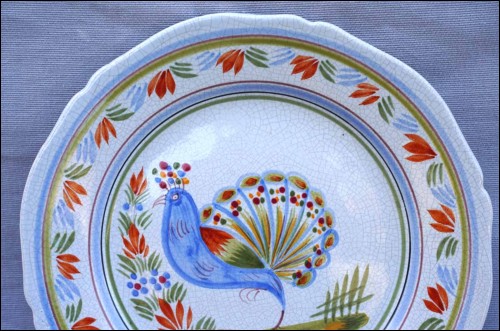 HENRIOT QUIMPER Peacock Rooster Scalloped Plate Vintage