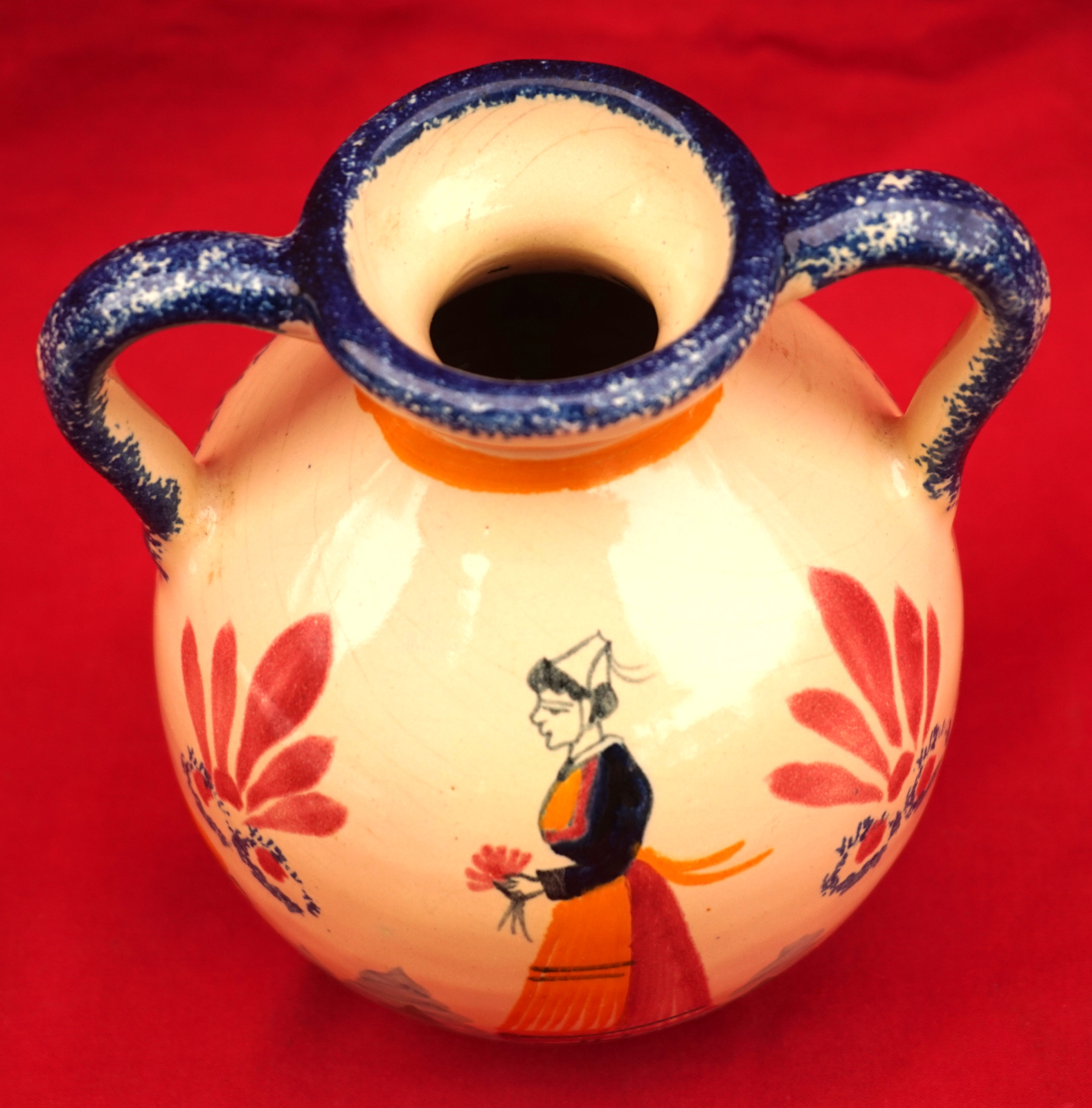 HENRIOT QUIMPER Small Handled Vase Pot Little Bretonne