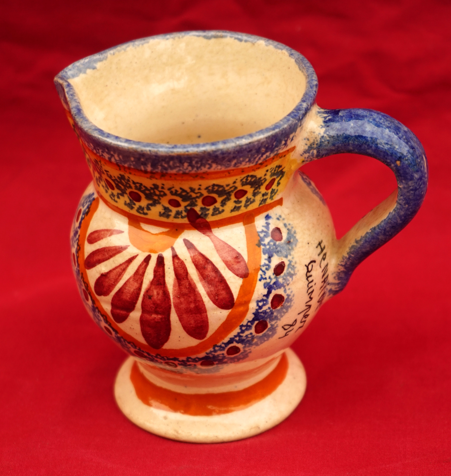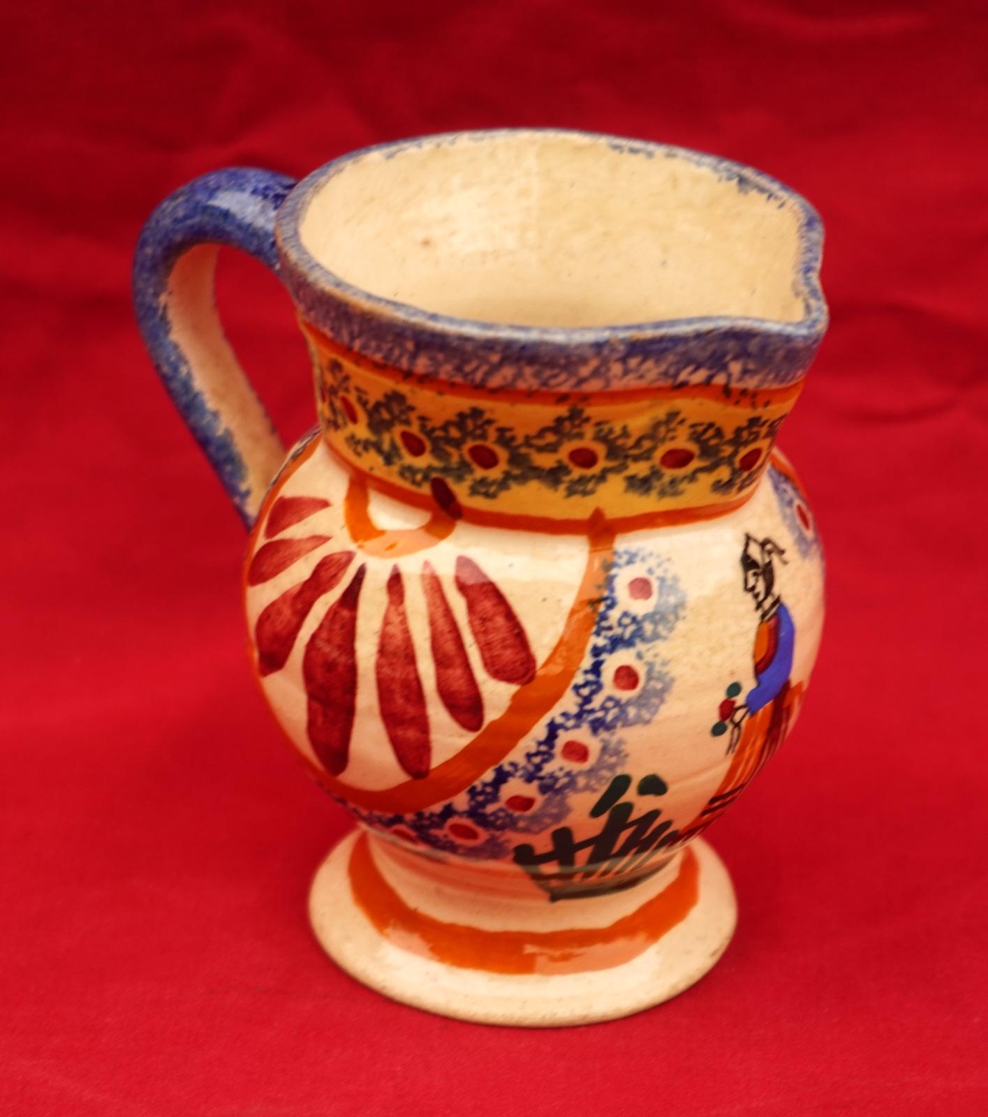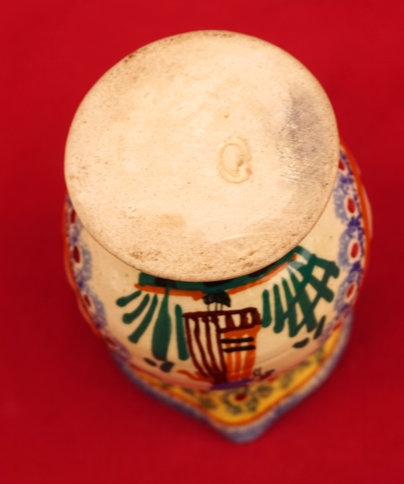 Petit pichet en faïence peinte à la main d'une Bretonne , manufacture Henriot Quimper vers 1930's. Il est signé sous l'anse. Largeur 9 cm, hauteur 8.5 cm. Parfait état.