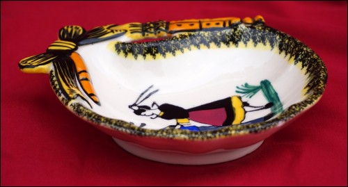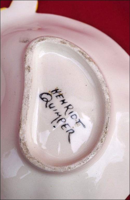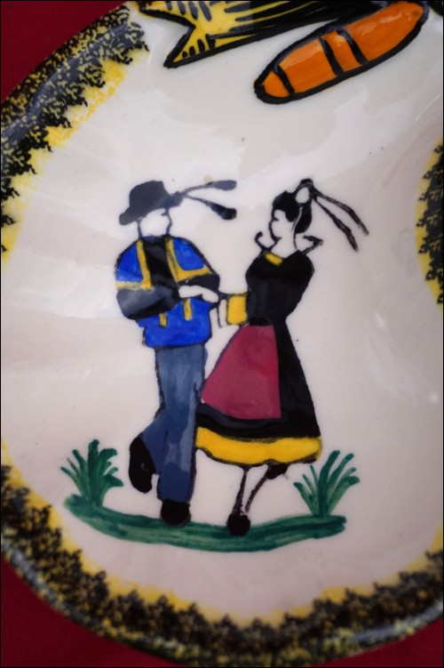 HENRIOT QUIMPER Vintage French Hand Painted Faience Dancers Bapipe Dish Tidy