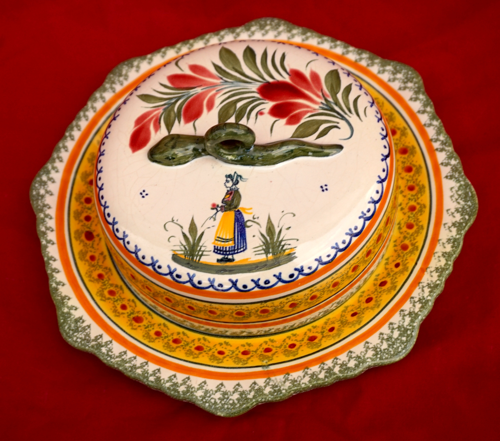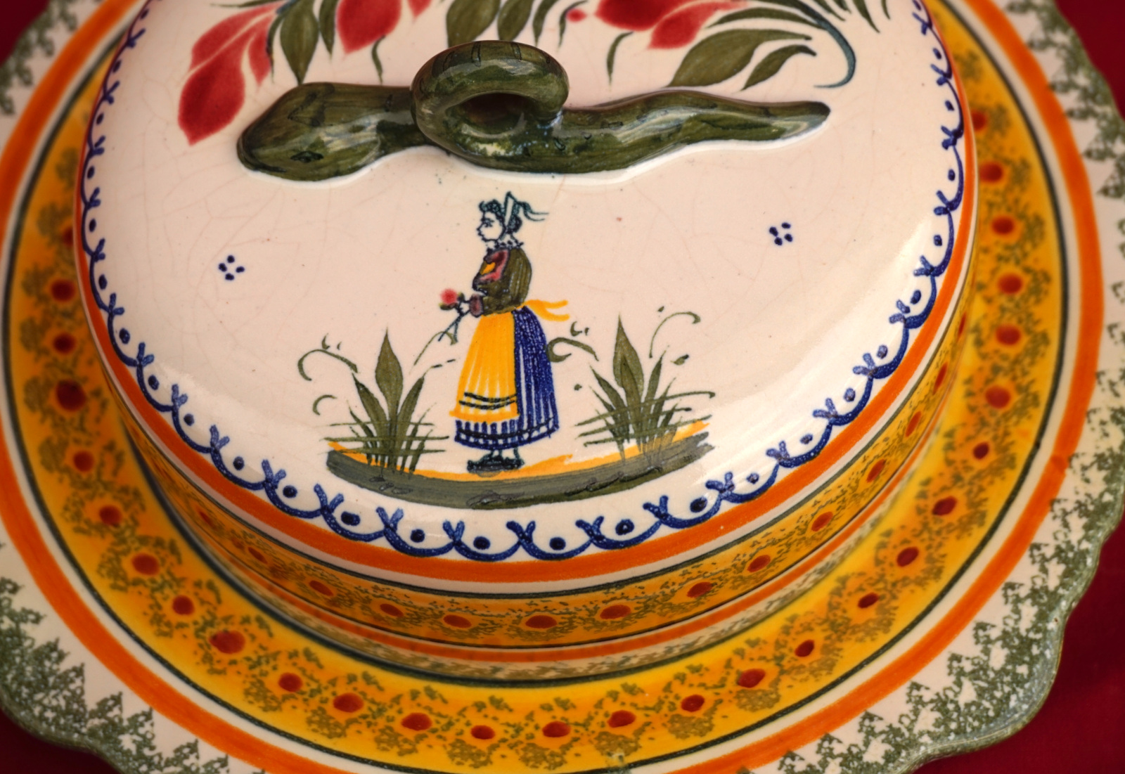 HENRIOT QUIMPER Vintage Petite Bretonne Lidded Butter Cheese Dish Snake