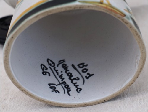 Vintage candlestick in enameld ceramic made by Keraluc in Quimper during the 1960's. It's signed on the bottom. 4 1/4" height 4 5/8" diameter at the top. Perfect condition as presented on the following pictures.