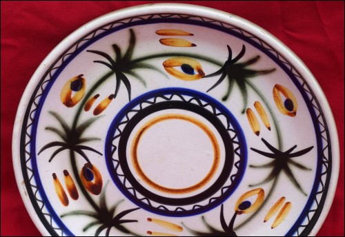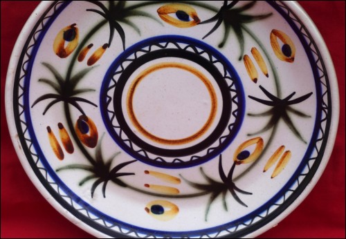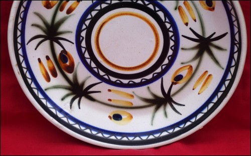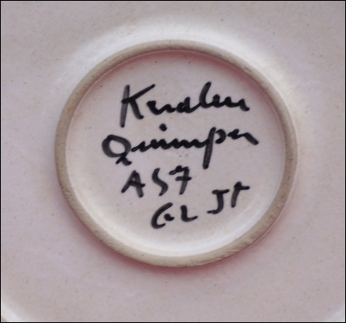 KERALUC QUIMPER Enameled Ceramic Plate Blue Green Brown Vintage