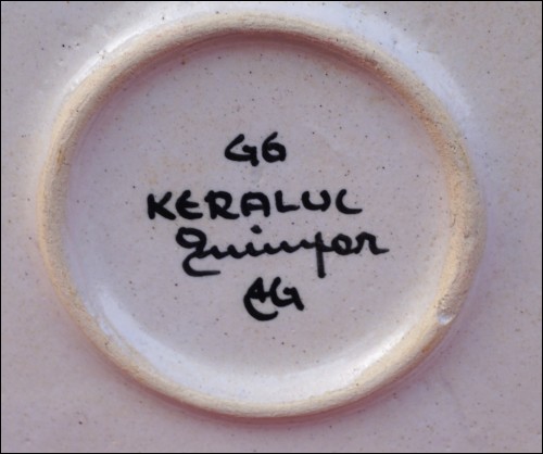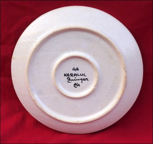 Assiette en céramique émaillé à décor de bouquet de fleurs dans un vase. Signée au dos Keraluc Quimper vers 1970's. Diamètre 22.5 cm. Parfait état.