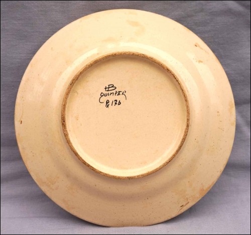 QUIMPER HB Hand Painted Faience Dahlia Cereal Soup Plate Vintage