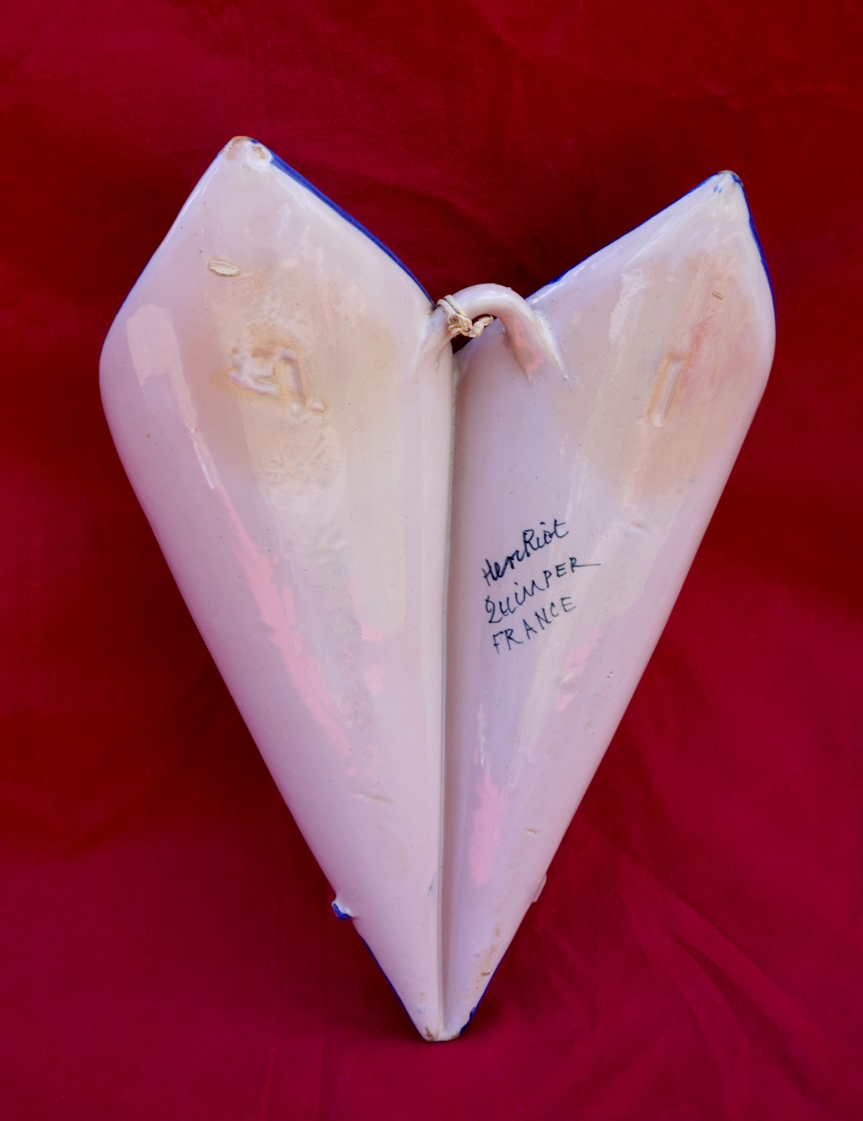 QUIMPER HENRIOT Double Wall Pocket Couple Breton French Faience 1910's