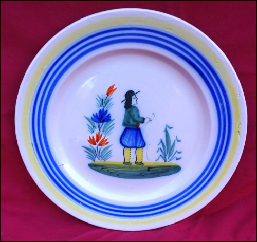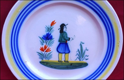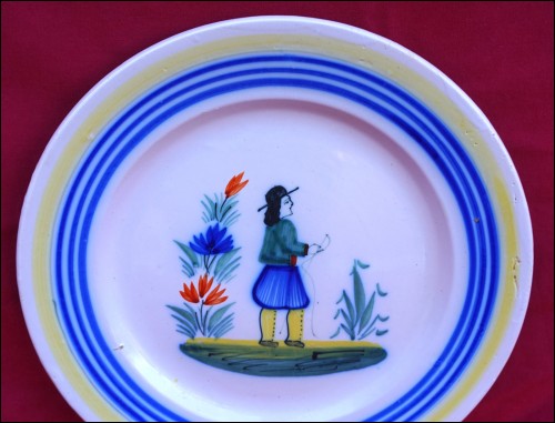 QUIMPER HENRIOT Little Breton Plate Hand Painted Faience 1910's