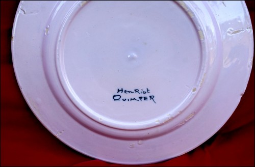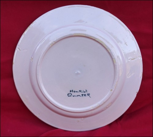 French hand painted faience with Petit Breton made by Henriot Quimper during the 1910's. It's signed Henriot Quimper on the back. 9 5/8" (24.5cm) diameter. Perfect condition a few glaze shortages on the back as shown by the following pictures.