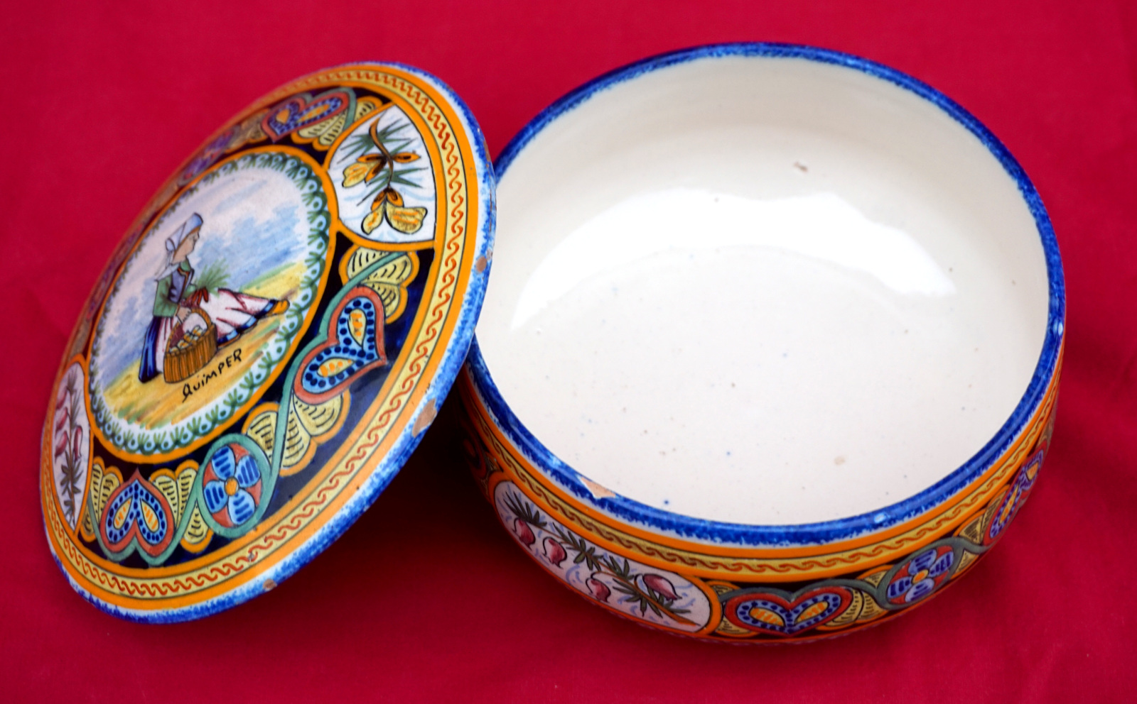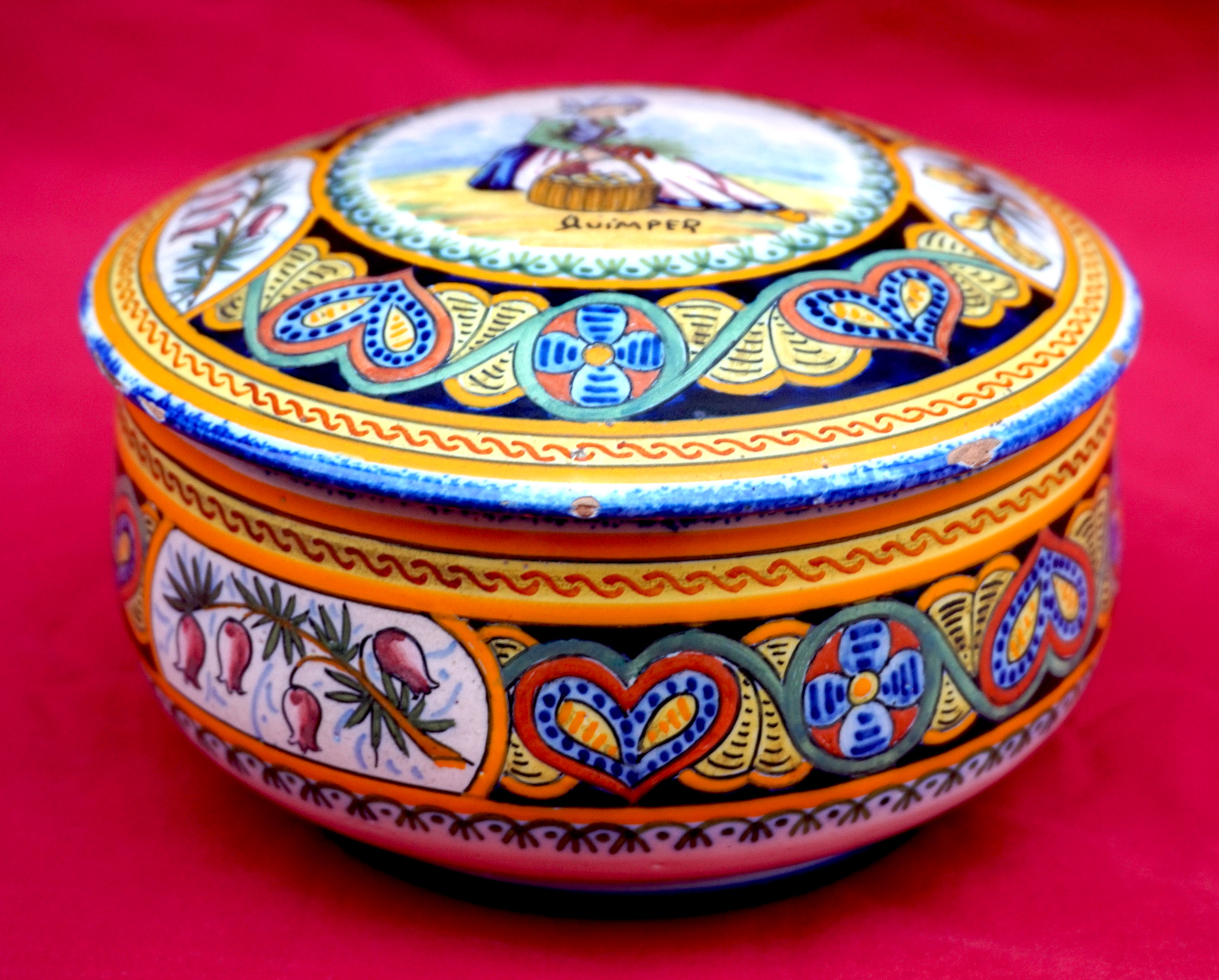 QUIMPER Henriot Little Bretonne Lidded Box Early 20th C