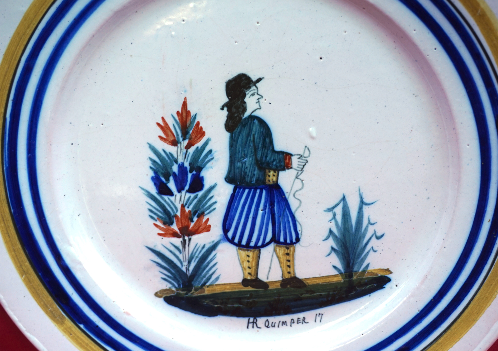 QUIMPER HR Breton Plate Hand Painted Faience 1900's
