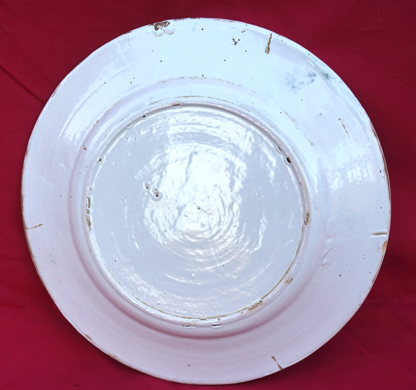 French hand painted faience plate showing a little breton in his garden by HR,La Grande Maison, Quimper during the 1900's. It's signed in front. 9 1/4" (23.5cm) diameter. Beautiful condition, a few burning flow.