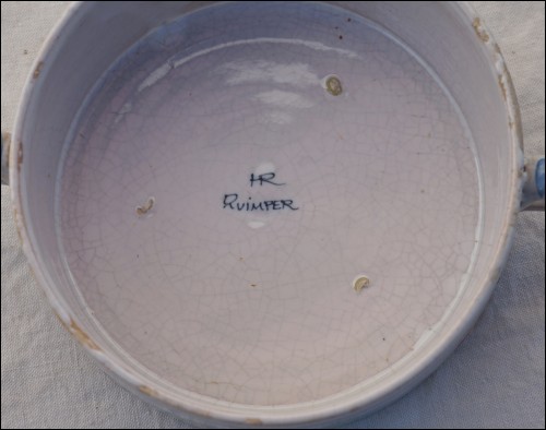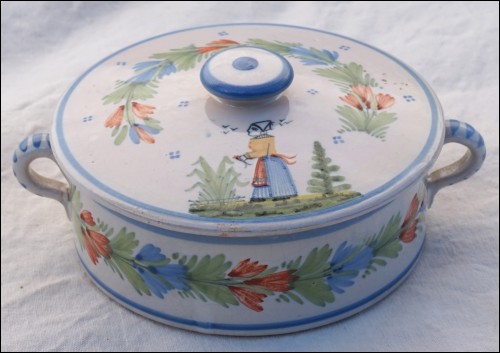 QUIMPER HR Trinket Candy Lidded Box Breton Late 19th C