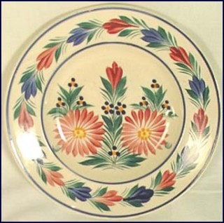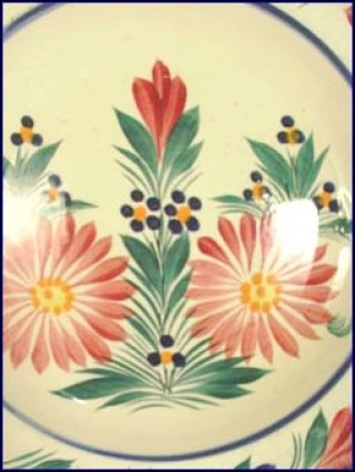 This soup plate has been made in the famous HB Quimper manufacture during the 50's. The hand painting pattern shows traditional flowers on a white background. 9"2/8 diameter. Good condition, signed on the back HB Quimper and the drawer marks.