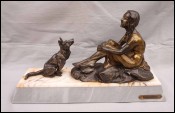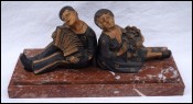 Art Deco Pierrot & Pierrette Patina Golden Spelter Bronze 1925