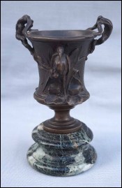 French Art Nouveau Herin in Reeds Small Urn Vase F Barbedienne Bronze Marble