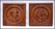Couple of Breton Quimper Carved Wood Panels Medallion Vintage