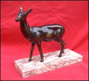 Art Deco Spelter Hind Deer Statue Marble Base 1930