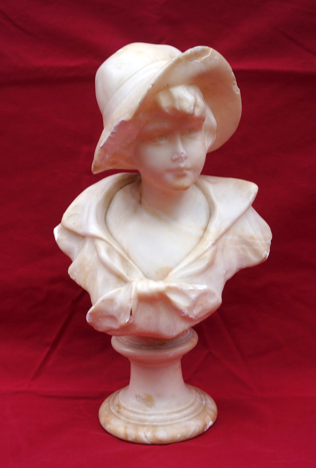 Italian Little Girl with Hat Bust Sculpture Figure Carved Alabaster Early 20th C