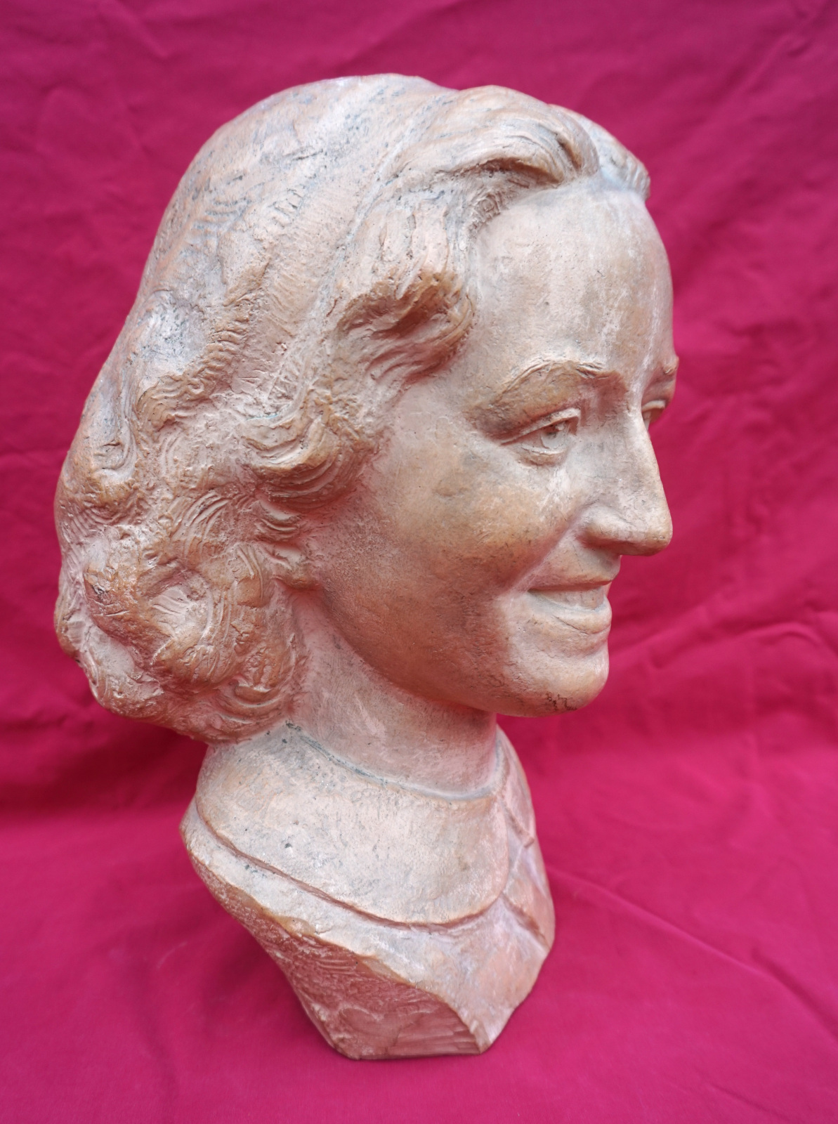 Art Deco Bust of Lady Terra Cotta Sculpture Figure G Vallon 1941