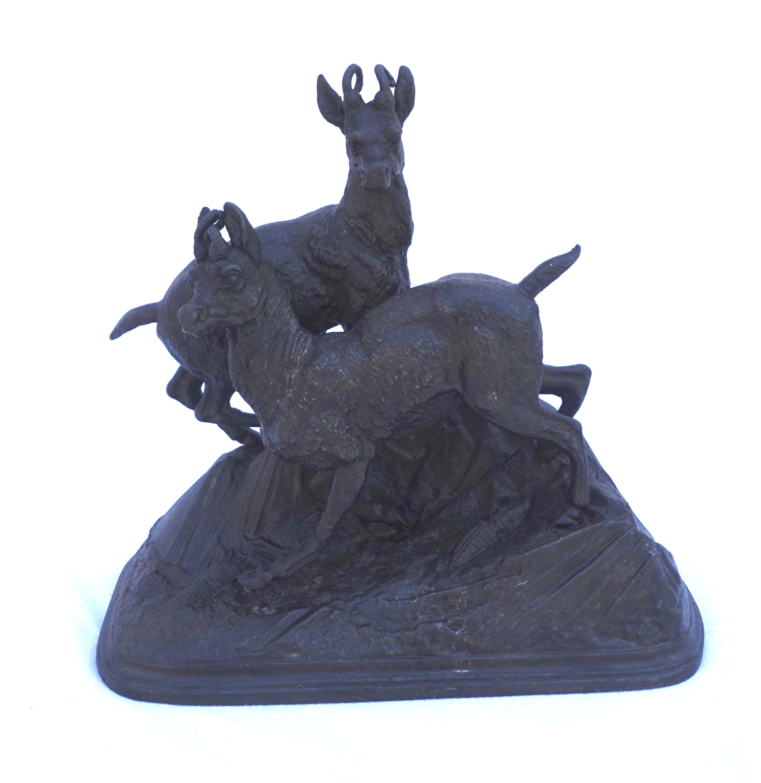 Black Forest Couple Ibex Zinc Statue Figure Early 20th C